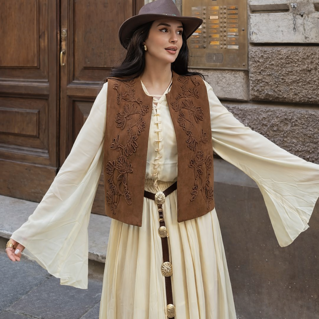 Embroidered Suede Texture Vest