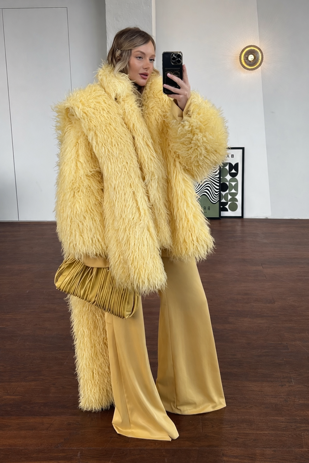 Elevate your autumn wardrobe with this luxurious faux fur plush coat, designed for effortless sophistication. Featuring a crew neck, long regular sleeves, and a flattering regular-length silhouette (50-65cm), this piece seamlessly transitions from casual outings to polished occasions. The plush texture delivers premium comfort while maintaining an elegant aesthetic perfect for stylish commuting. Available in six refined colorways—yellow, black, white, blue green, and a coordinating scarf—this versatile coat adapts to your personal style. Crafted with quality fabric composition, it offers durability and a luxurious feel.