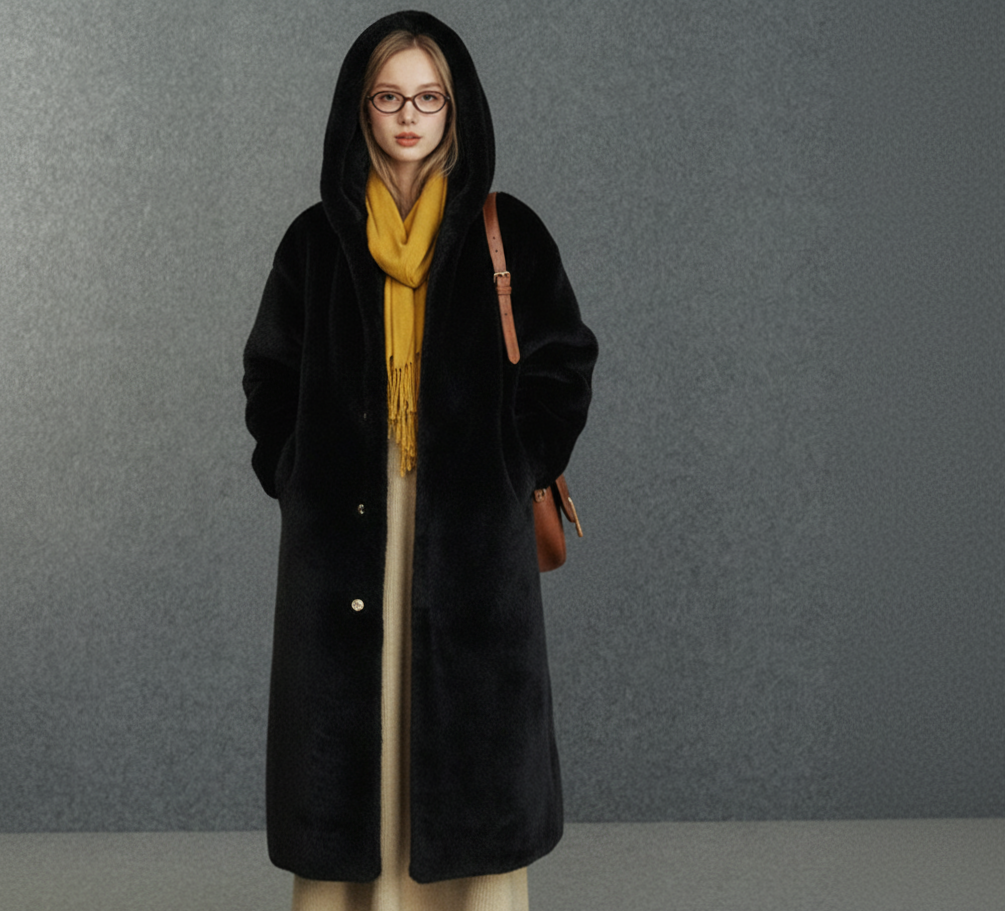 Elevate your winter wardrobe with this Korean-inspired plush swing coat, crafted from luxurious imitation mink fur for a sophisticated silhouette. Featuring a thickened, oversized construction that drapes elegantly, this long outwear piece delivers both warmth and refined style. The hat collar and nine-point sleeves provide practical coverage while maintaining a polished aesthetic. Designed for lengths between 80-100cm, it offers generous coverage. Perfect for those seeking quality outerwear that balances comfort with contemporary elegance.