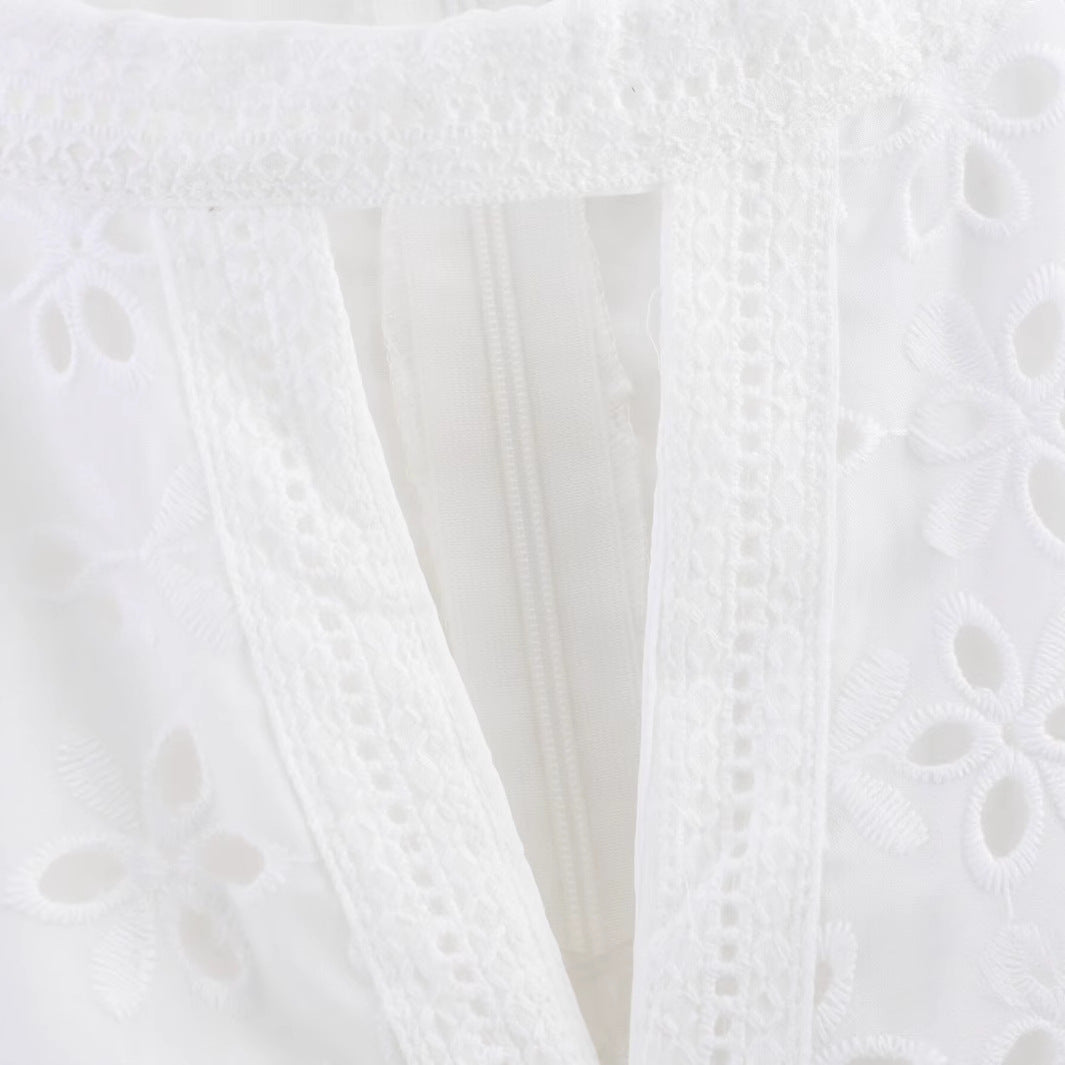 This A-line dress combines contemporary street style with timeless elegance. Crafted from premium polyester, it features a classic crew neckline and long sleeves for versatile layering. The short silhouette and low-rise waist create a flattering, modern silhouette, while strategic hollow-out detailing adds visual interest.