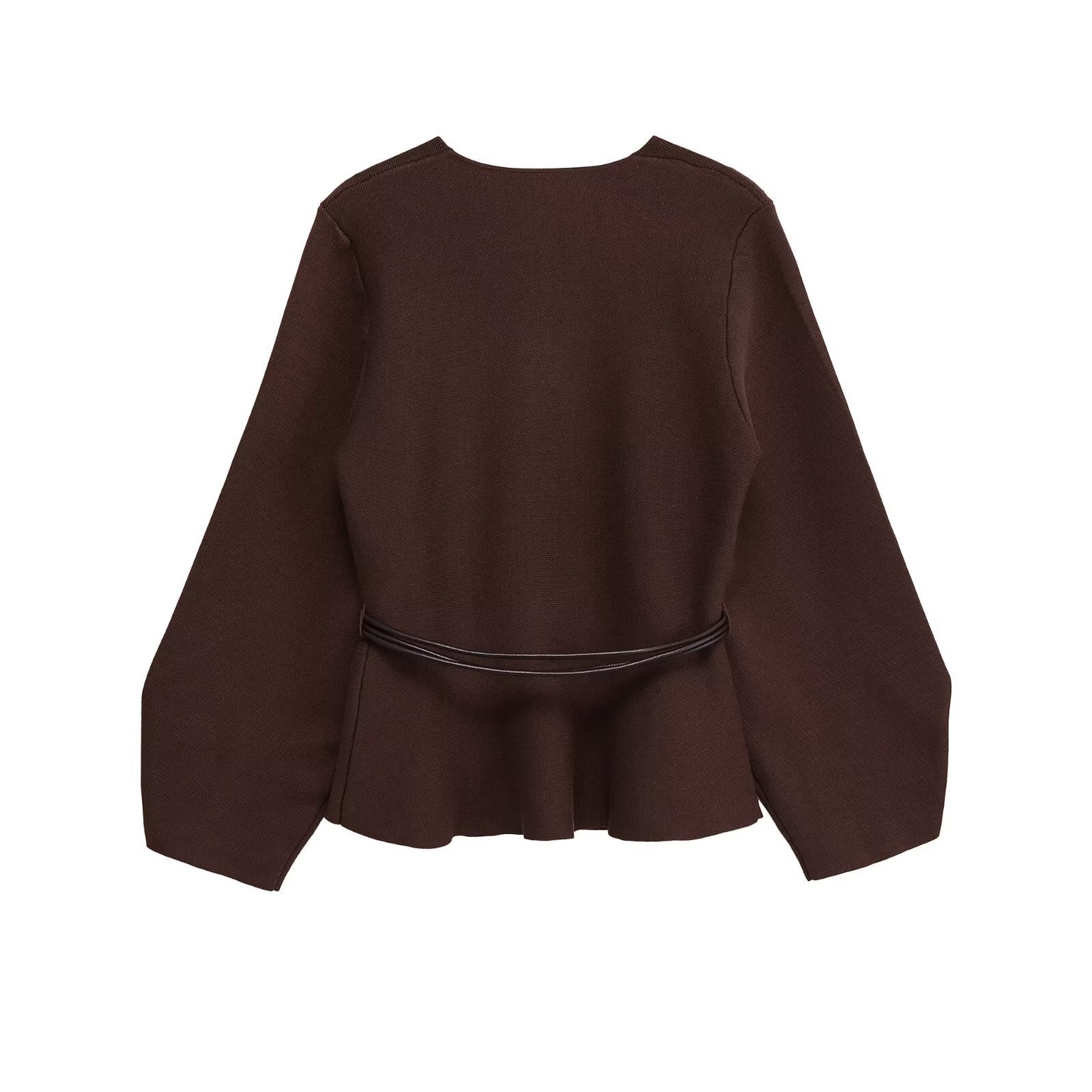 V-neck Long Sleeve Knitted Cardigan with Belt