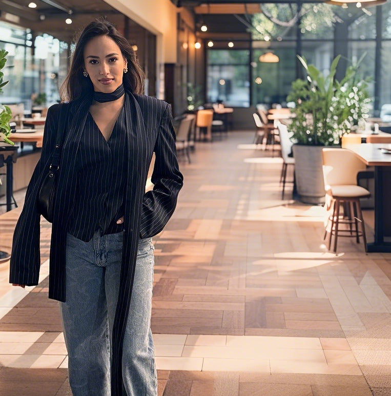 Elevate your professional wardrobe with this sophisticated suit jacket and skirt ensemble, designed for the modern commuter. Featuring a refined V-neck collar and long sleeves with regular cuffs, this two-piece set combines timeless elegance with contemporary style. The striking grid pattern adds visual interest while maintaining a polished aesthetic perfect for office settings and business occasions.
