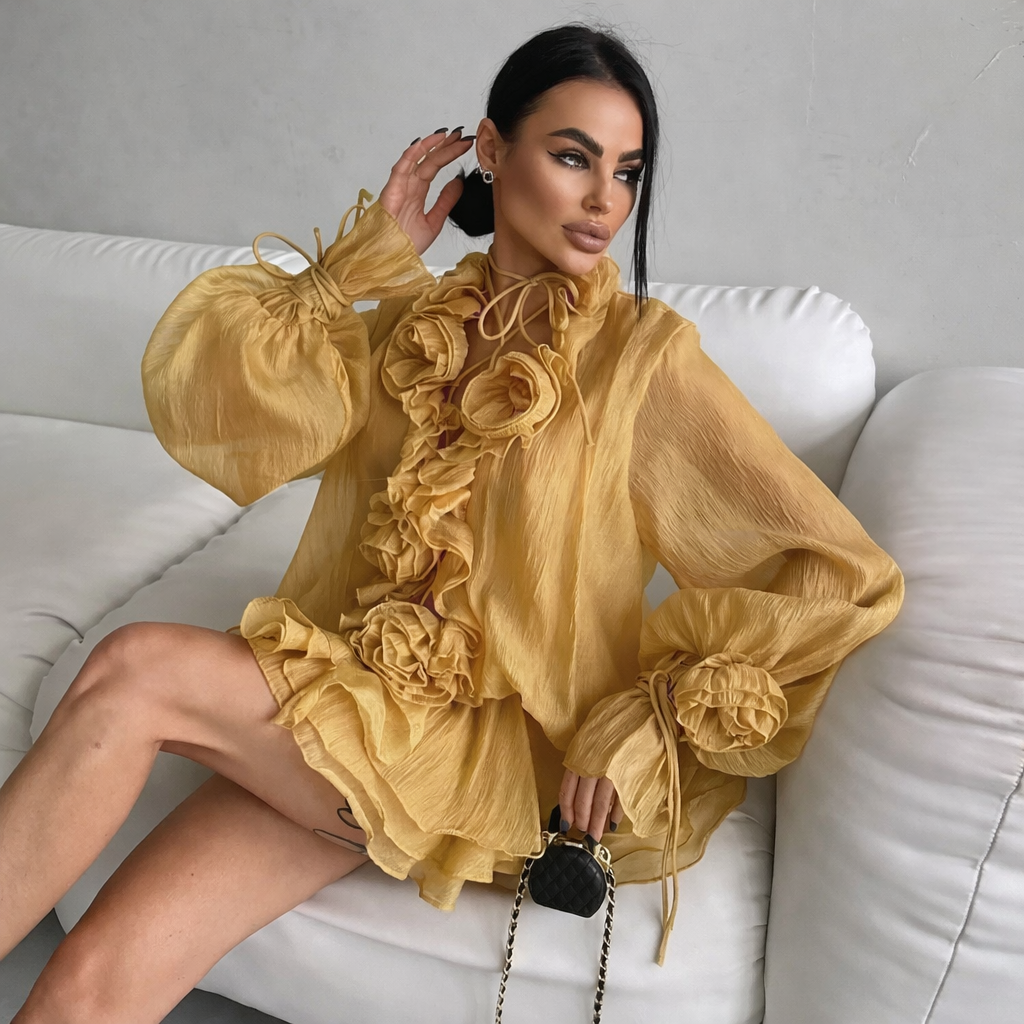 The Wavy Floral Dress Set combines contemporary elegance with versatile styling. This sleeveless midi tutu features a sophisticated mid-rise waist and lapel collar, crafted from premium polyester for comfort and durability. The collage assembly technique creates distinctive visual interest through strategic splicing details.