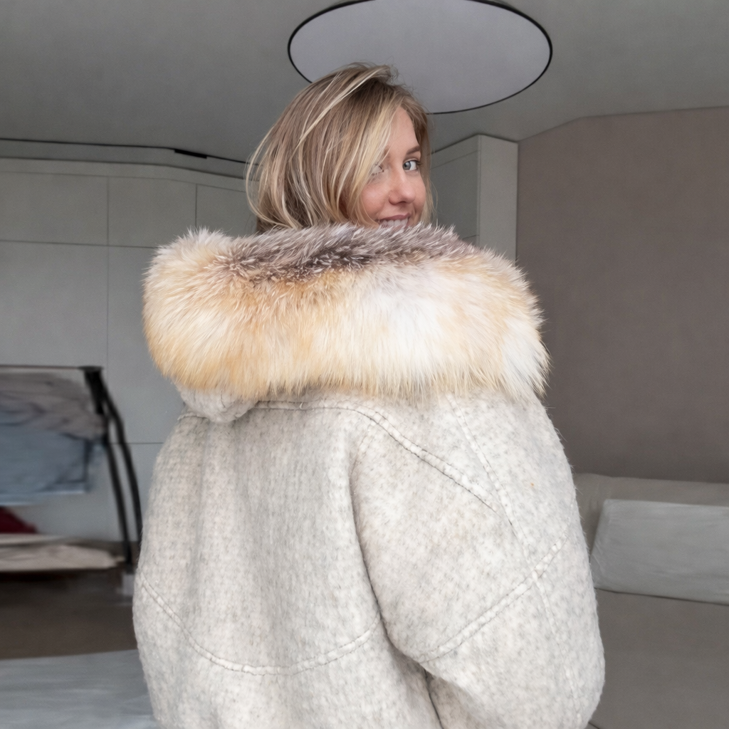 Winter Short Cotton Coat with Faux Fur Collar